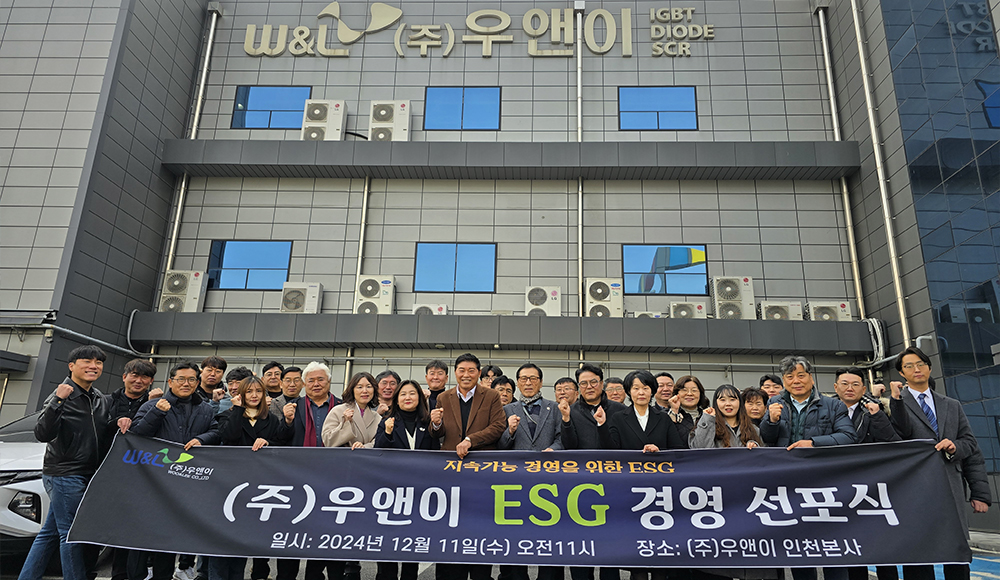 (주)우앤이는 전력전자 분야의 글로벌 리더로서 ESG 경영을 핵심 가치로 삼아, 환경과 사회에 기여하는 지속 가능 경영을 실현하고 있습니다.